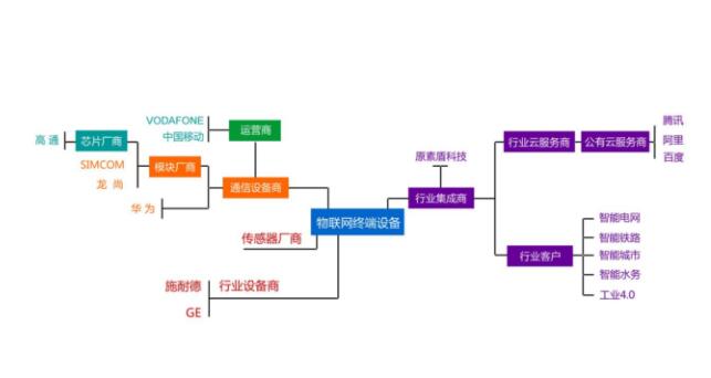 目前,人们习惯将物联网分为“感知层”、“网络层”、“应用层”三个层面。其中感知层包括各类物联网终端设备,如二维码、RFID、各类传感器等;网络层包括2G、3G、4G以及有线网络等;应用层包括绿色农业、公共安全、工业监控、智能家庭、智能交通、智慧城市等应用领域。但现实中,物联网产业链的划分往往不是那么的清晰,很多企业横跨多个领域,彼此互有重合的部分,例如深圳原素盾科技,既是模块厂商,又是设备制造商,同时业务也涉及到很多行业的系统集成。在这里,我们仅从感知层面和应用层面展开讨论。